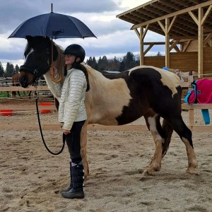 K meni je prišel kot 1 leto staro žrebe, z vizijo, da bo plemenski žrebec za paint konje. Ima dober rodovnik, lep značaj. Pa še želela sem si imet žrebca. 🙆♀️Zaradi svoje mirnosti sem ga od malega navajala na raznorazne pripomočke, žoge, stožce, da bo nekoč terapevtski konj. 🙃 No, zdaj še nima časa za to službo, ker bo najprej dobro ujahan konj … Veš, Bubble ima srečo v življenju in ima sam svojega človeka 🥰 to je za konja nekaj najboljšega, saj ima stabilnost, redne treninge z isto osebo, ni vsako uro drugega jahača.